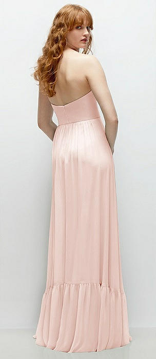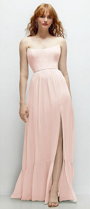Strapless Cat-Eye Boned Bodice Maxi Dress with Ruffle Hem in blush