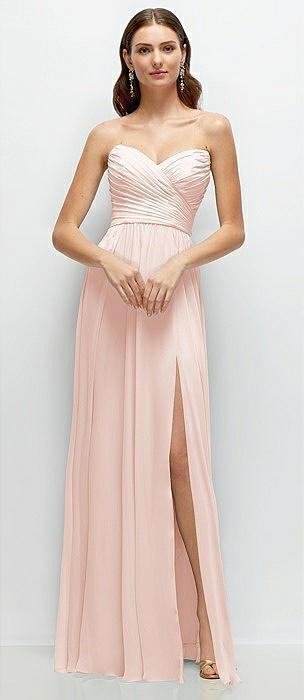 Strapless Pleated Surplice Chiffon Maxi Dress with A-Line Skirt in blush