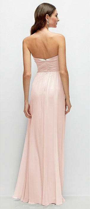 Strapless Scoop Back Maxi Dress with Front Slit in blush