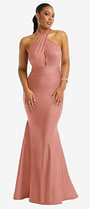 Criss Cross Halter Open-Back Stretch Satin Mermaid Dress