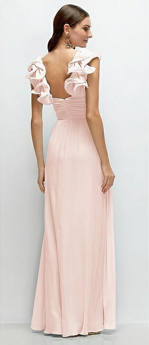 Dramatic Ruffle Edge Strap Chiffon Maxi Dress in blush