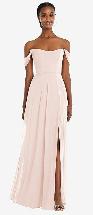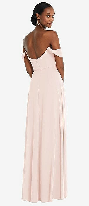 Off-the-Shoulder Basque Neck Maxi Dress with Flounce Sleeves in blush