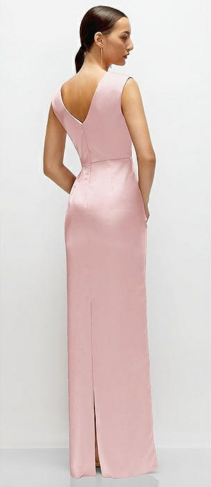Sleeveless Draped Wrap Bodice Stretch Satin Column Maxi Dress in ballet pink