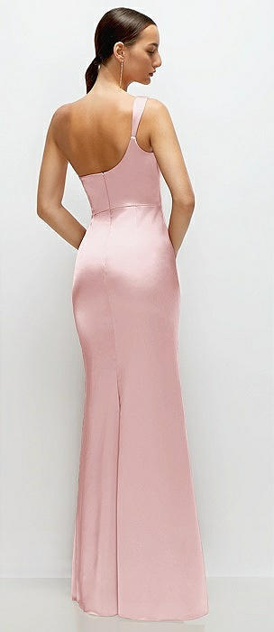 One-Shoulder Draped Skirt Satin Trumpet Gown in desert rose
