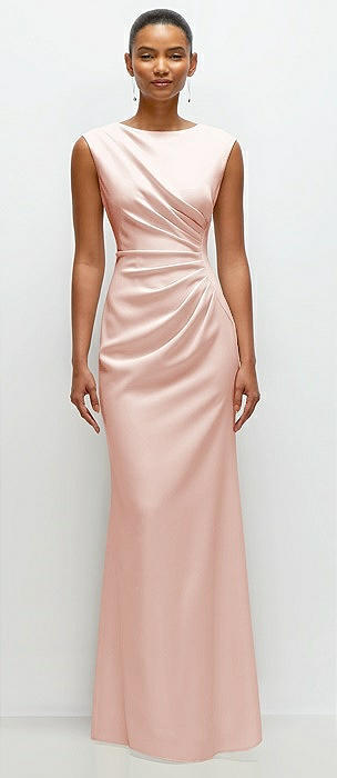 Sleeveless Cap Shoulder Crepe Maxi Dress with Trumpet Skirt in blush