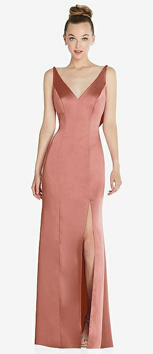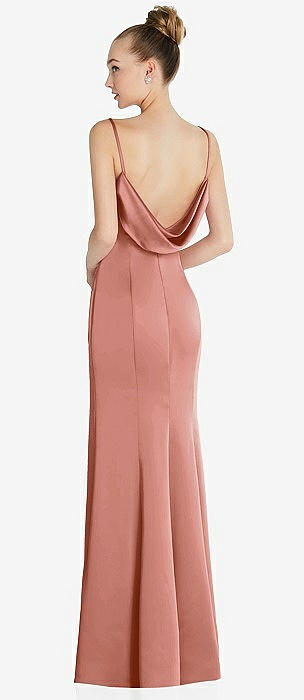 Draped Cowl-Back Princess Line Dress with Front Slit in desert rose