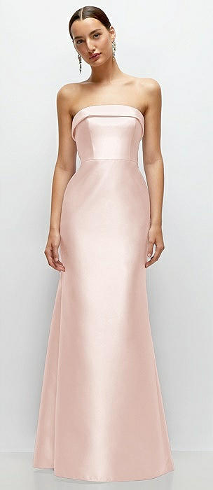 Strapless Cuff Neckline Satin Trumpet Gown in blush