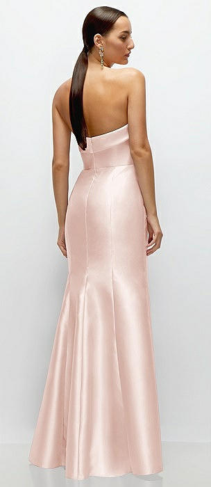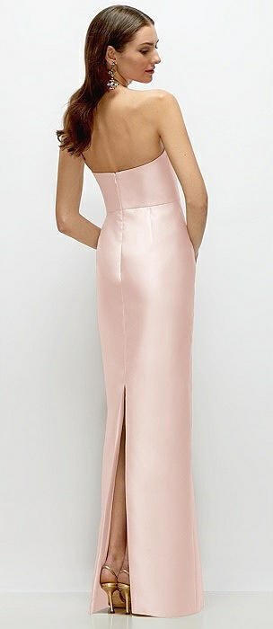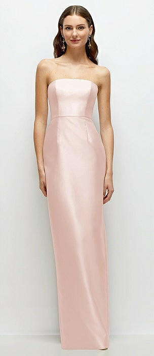 Strapless Satin Column Dress with Back Slit in blush
