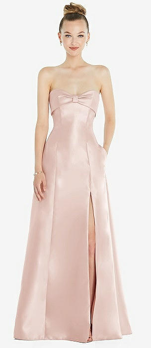 Strapless Cuff Satin Maxi Dress with Column Skirt & Back Bow in blush