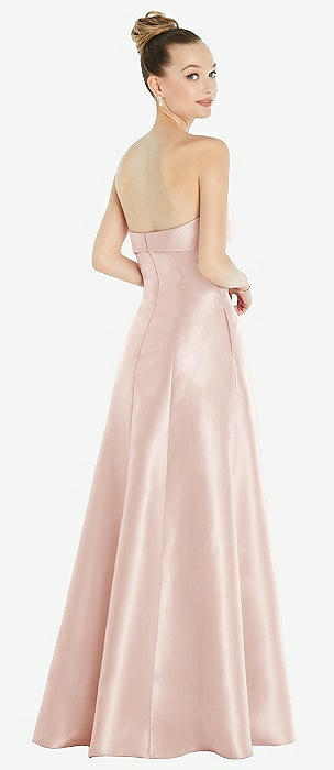 Strapless Satin Gown with Full Skirt and Covered Buttons at Back in blush