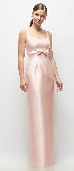 Scoop Neck Satin Column Maxi Dress with Bow at Empire Waist in blush