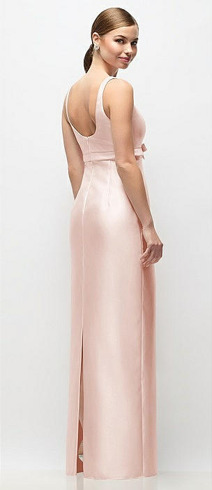 Bateau Neck Satin Column Maxi Dress with Exaggerated Tail Bow Straps in blush