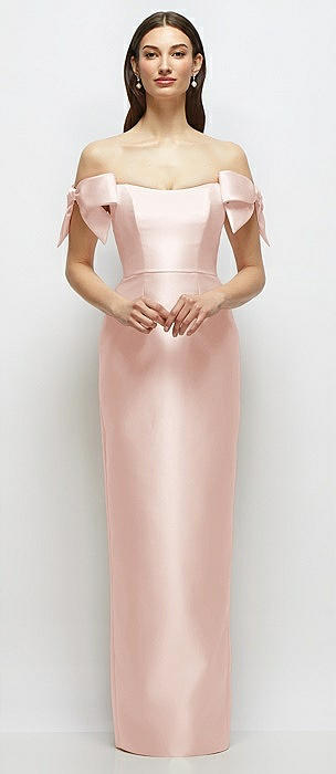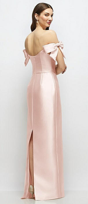 Deep V-Neck Satin Ball Gown with Shoulder Bows in blush