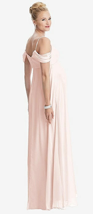 Draped Cold-Shoulder Chiffon Maternity Dress in blush