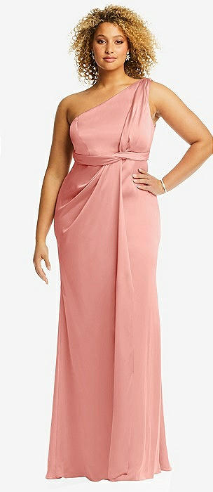 One-Shoulder Draped Twist Empire Waist Trumpet Gown in rose