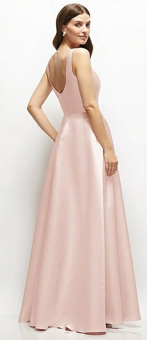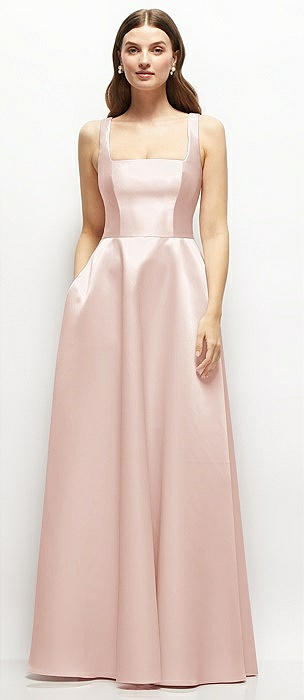 Square-Neck Satin Maxi Dress with Full Skirt in blush