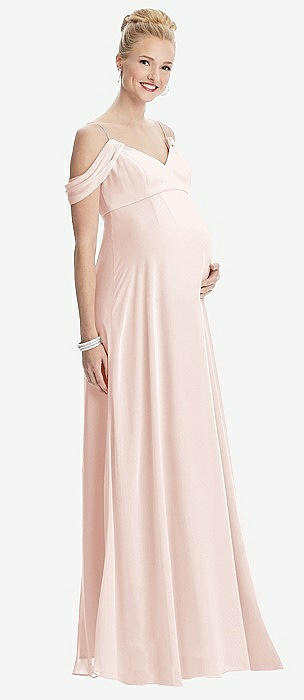 Draped Cold-Shoulder Chiffon Maternity Dress in blush