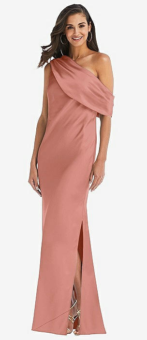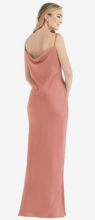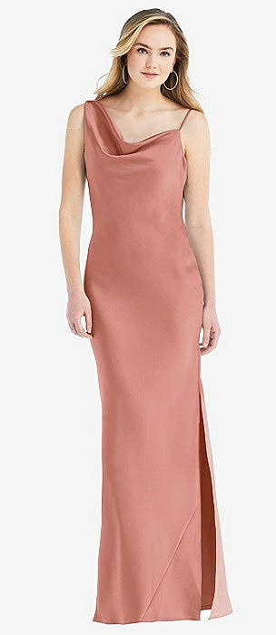 Asymmetrical One-Shoulder Cowl Maxi Slip Dress in desert rose