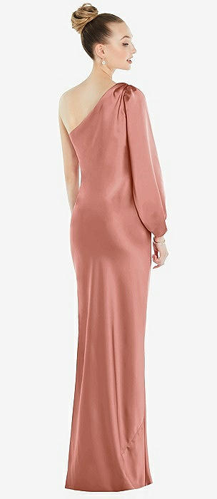 One-Shoulder Puff Sleeve Maxi Bias Dress with Side Slit in desert rose