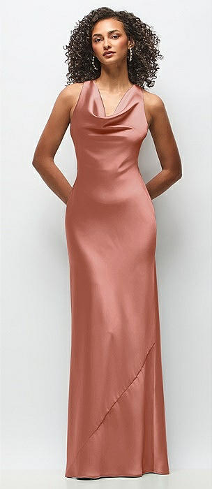 Cowl Neck Criss-Cross Back Satin Maxi Dress in desert rose