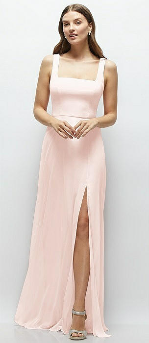 Square Neck Chiffon Maxi Dress with Circle Skirt in blush