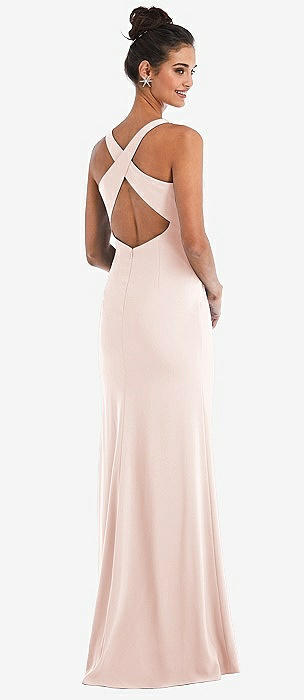 Criss-Cross Cutout Back Maxi Dress with Front Slit in blush