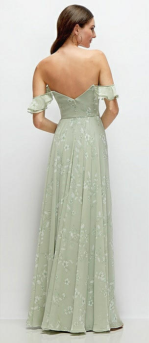Chiffon Corset Maxi Dress with Removable Off-the-Shoulder Swags in palm beach print