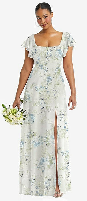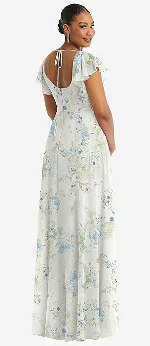 Flutter Sleeve Scoop Open-Back Chiffon Maxi Dress in bleu garden