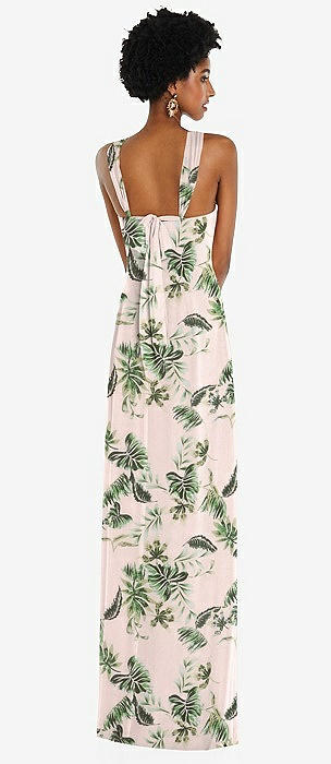 Faux Wrap Criss Cross Back Maxi Dress with Adjustable Straps in palm beach print