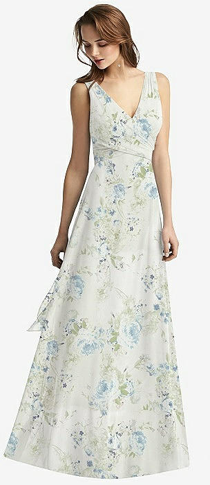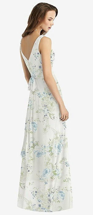 Sleeveless V-Neck Chiffon Wrap Dress in bleu garden