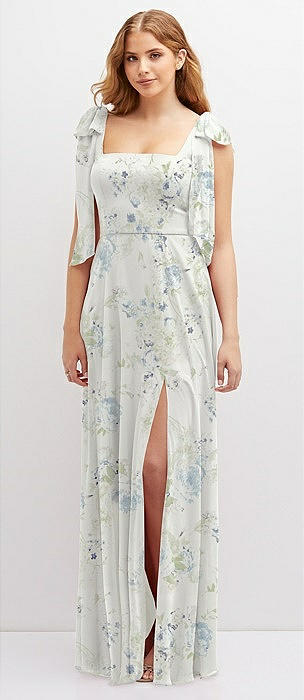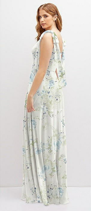 Bow Shoulder Square Neck Chiffon Maxi Dress in bleu garden