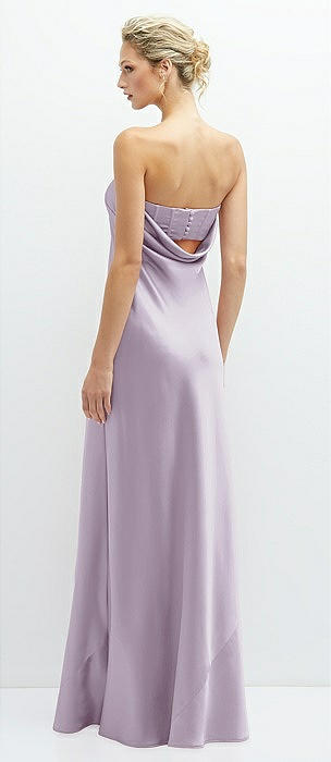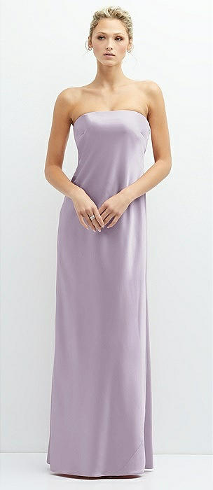 Strapless Maxi Bias Column Dress with Peek-a-Boo Corset Back in lilac haze