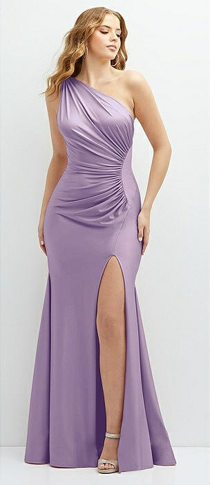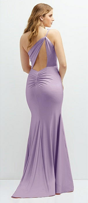 Asymmetrical Open-Back One-Shoulder Stretch Satin Mermaid Dress in pale purple