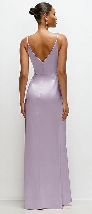 High Cowl Neck Open-Back Stretch Satin Bias Maxi Dress in lilac haze