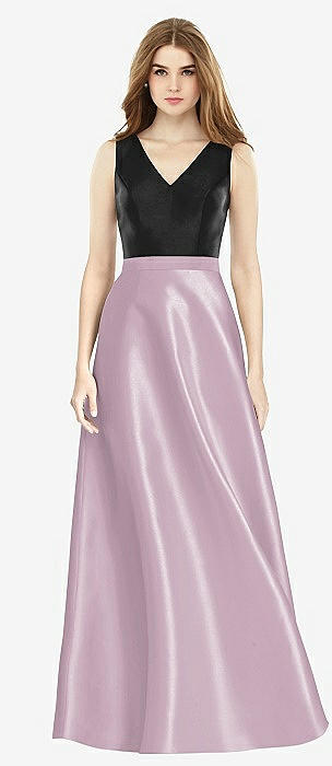 V-Neck Full Skirt Satin Maxi Dress in suede rose