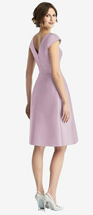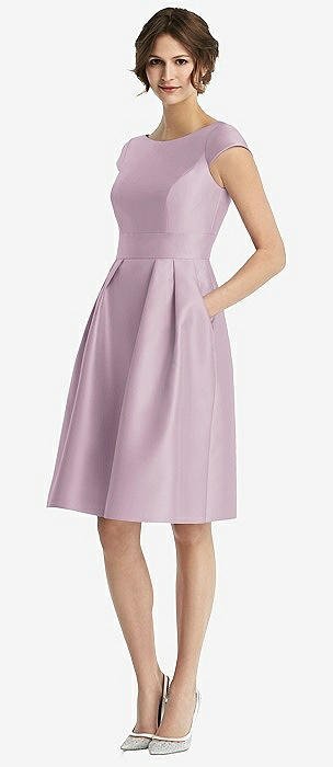 Cap Sleeve Pleated Cocktail Dress with Pockets in suede rose