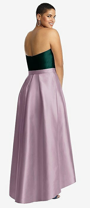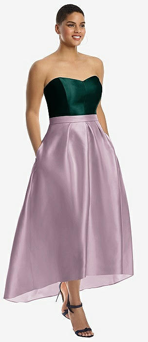 Strapless Deep Ruffle Hem Satin High Low Dress with Pockets in suede rose