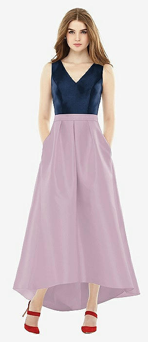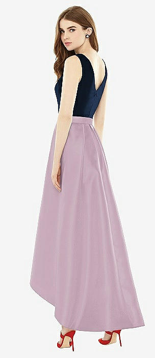 Bateau Neck Satin High Low Cocktail Dress in suede rose