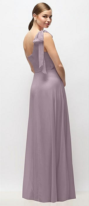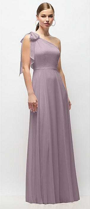 Bow One-Shoulder Satin Trumpet Gown in lilac haze