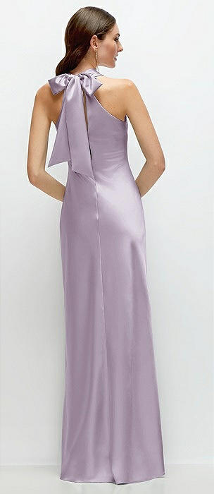 Pleated Halter Bias Satin Maxi Dress with Self-Tie Bow Back in lilac haze