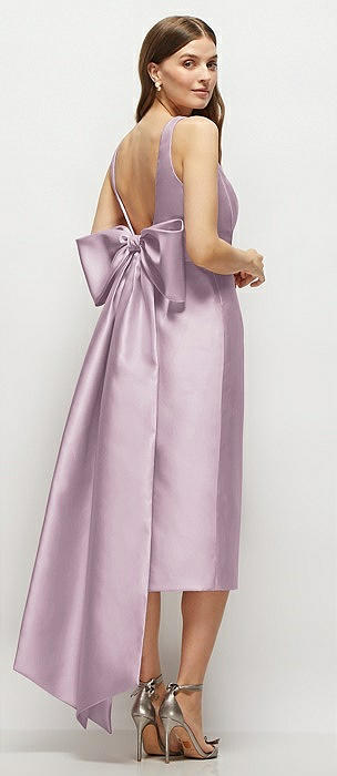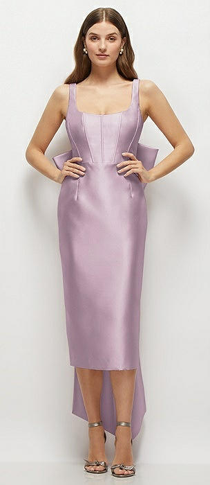 Scoop Neck Corset Satin Midi Dress with Floor-Length Bow Tails in suede rose