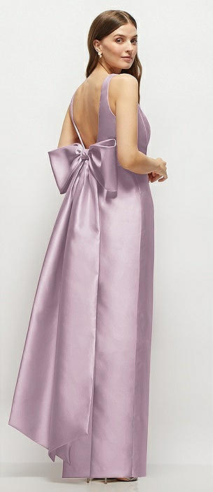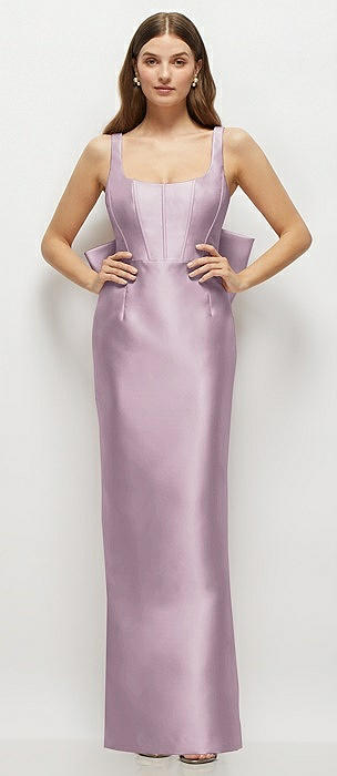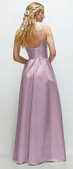 Scoop Neck Corset Satin Maxi Dress with Floor-Length Bow Tails in suede rose