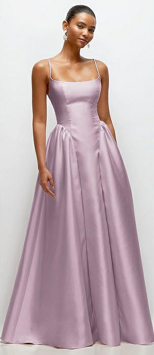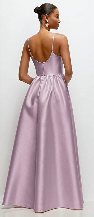 Scoop Neck Drop Basque Skirt Satin Maxi Dress with Pockets in suede rose