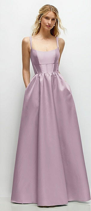 Scoop Neck Inset Corset Satin Maxi Dress with Pockets in suede rose
