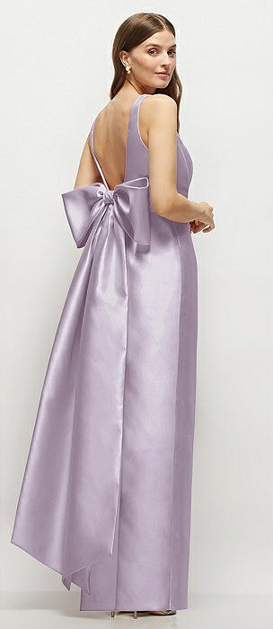 Scoop Neck Satin Column Maxi Dress with Bow at Empire Waist in lilac haze