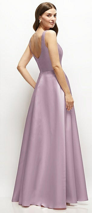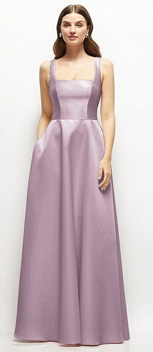 Sleeveless Square-Neck Princess Line Gown with Pockets in suede rose