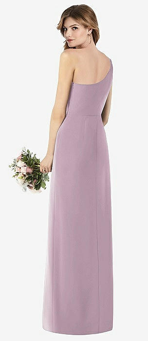 One-Shoulder Crepe Trumpet Gown with Front Slit in suede rose