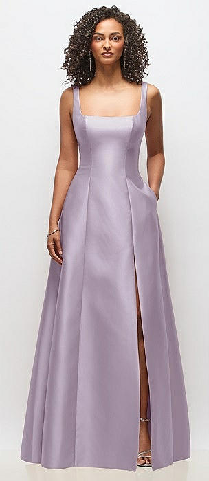 Sleeveless Square-Neck Princess Line Gown with Pockets in lilac haze