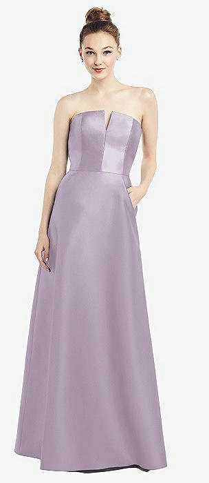 Strapless Notch Satin Gown with Pockets in lilac haze
