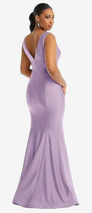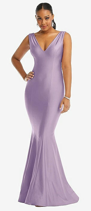 Shirred Shoulder Stretch Satin Mermaid Dress with Slight Train in pale purple